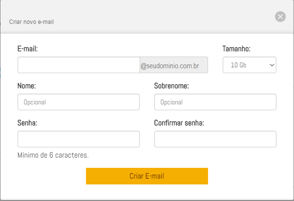 E-mail: complete com o nome da conta de e-mail, ex: contato@seudomínio