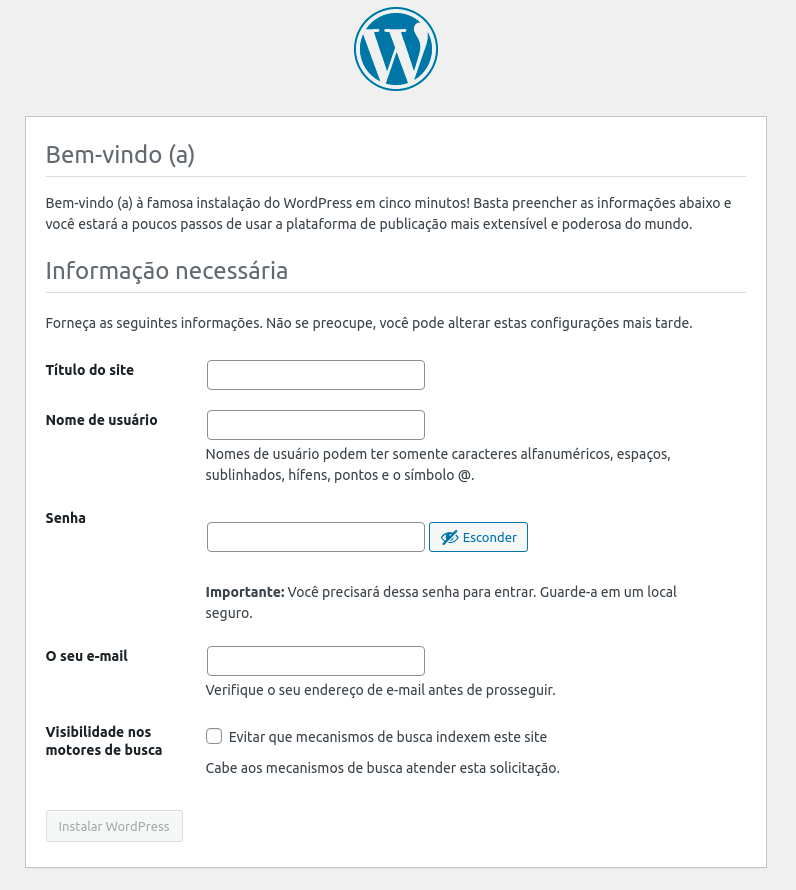8 – Após preencher, basta clica em "Instalar wordpress" que seu Wordpress estará funcionando e pronto para edição!