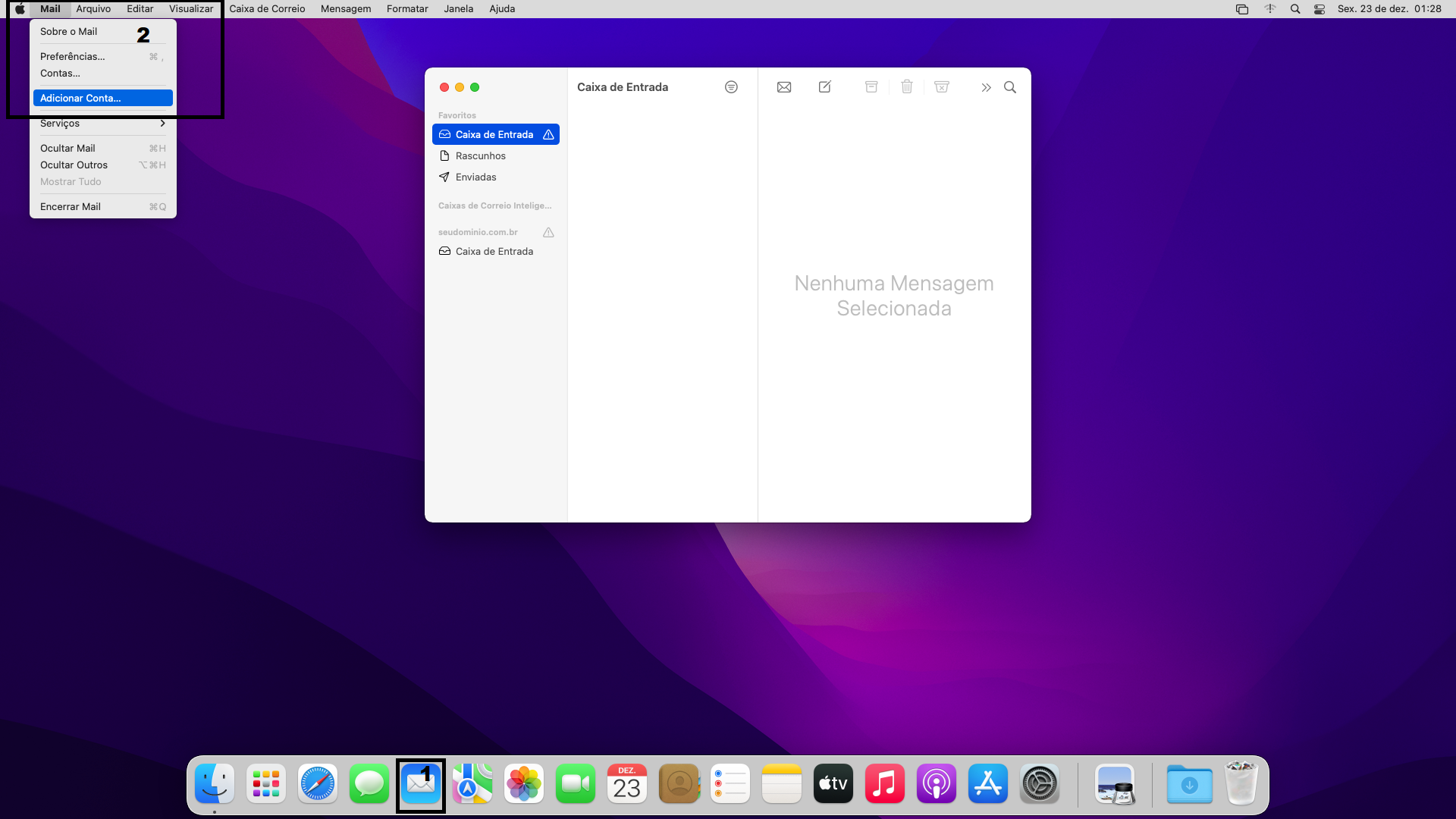 2. Vá na opção Mail e em seguida Adicionar conta.
