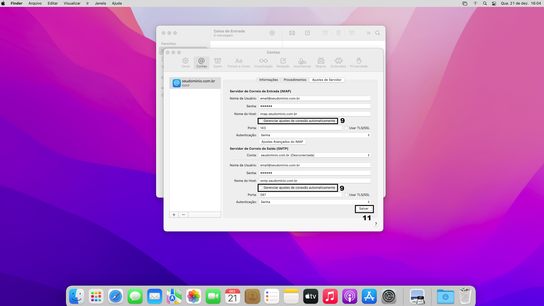 10. Na seção Servidor de Correio de Entrada (IMAP)