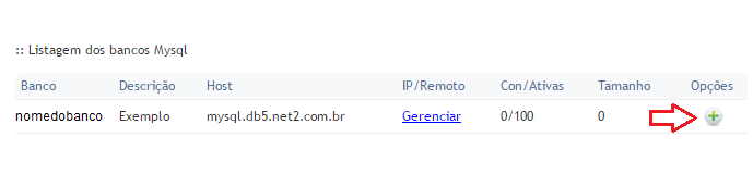 3 – Depois que sua base de dados estiver criada, clique em Opções