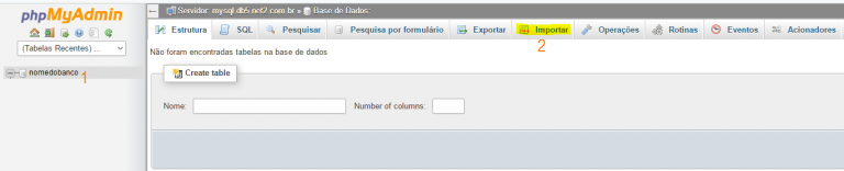 Se ainda não criou a base de dados faça o seguinte procedimento. Caso já tenha criado a base, pule para a etapa 3