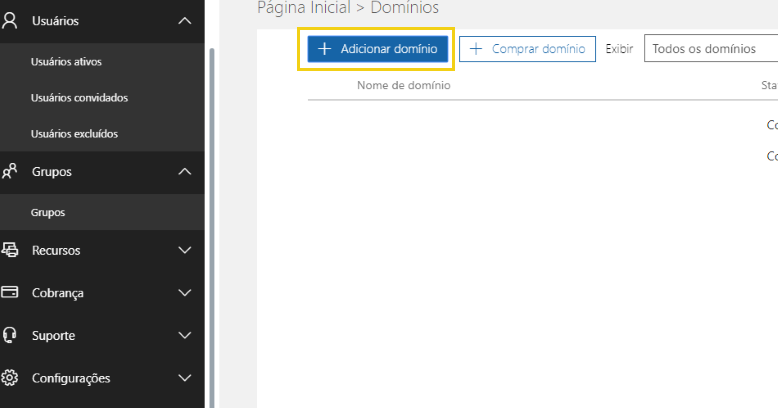 Após adicionar todas as entradas, retorne ao painel do Office 365