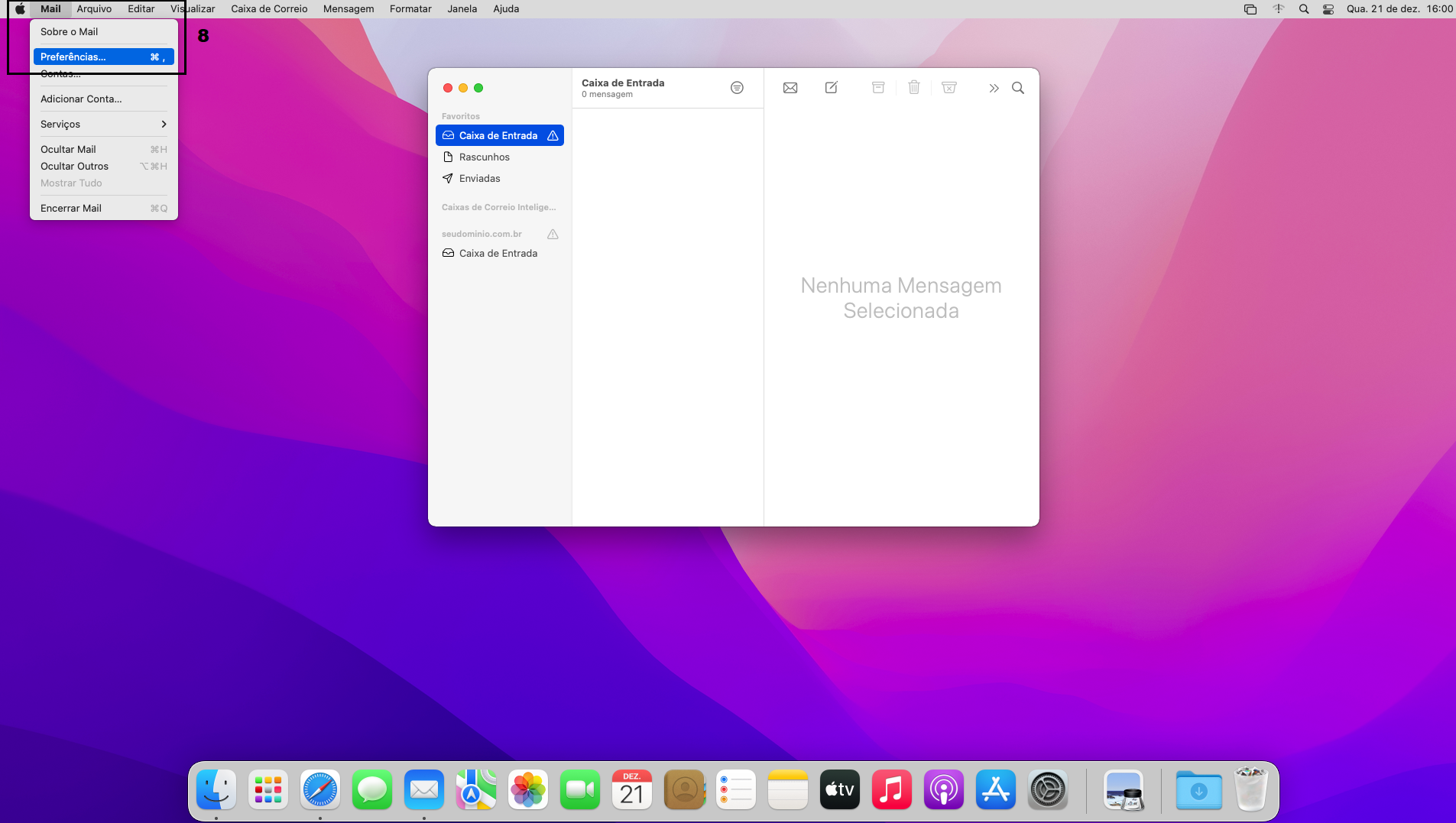 8. Voltando ao Menu Principal do Mail, clique em Preferências: