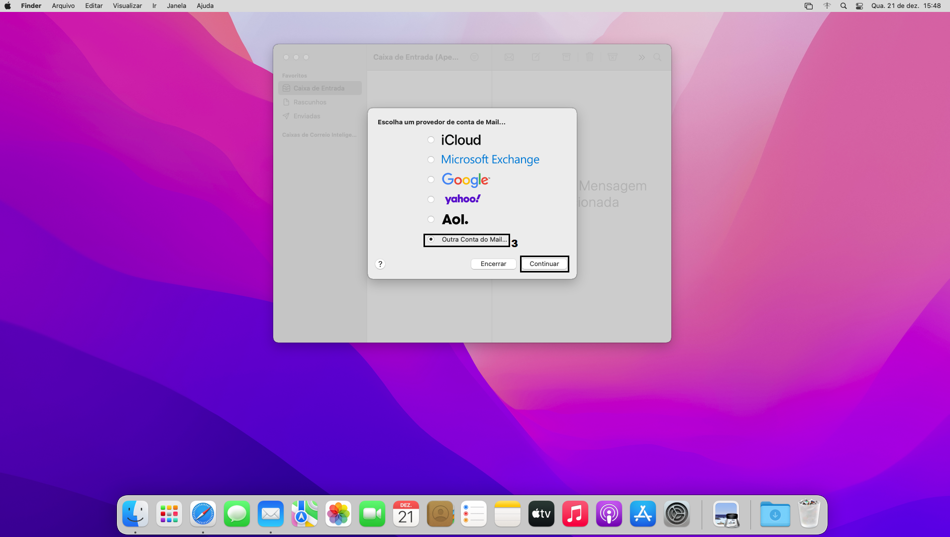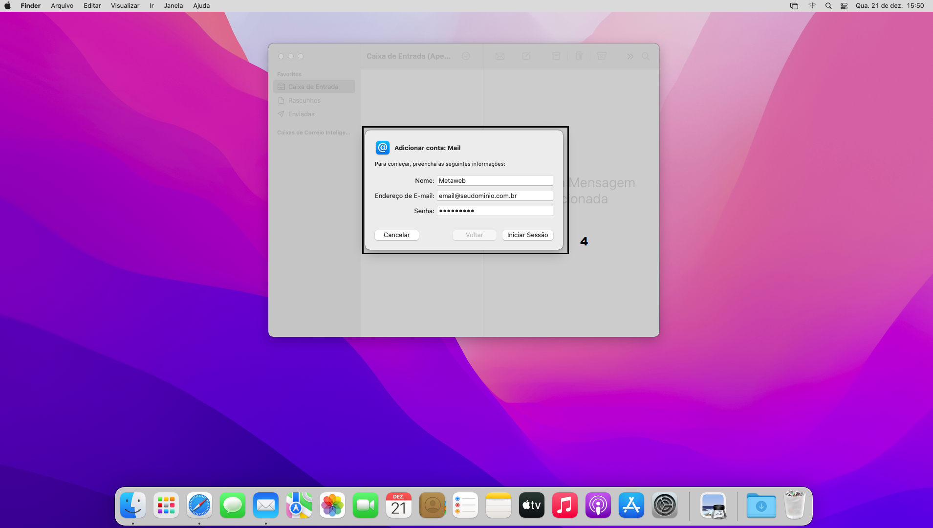 4. Em Adicionar conta de e-mail digite as seguintes informações: