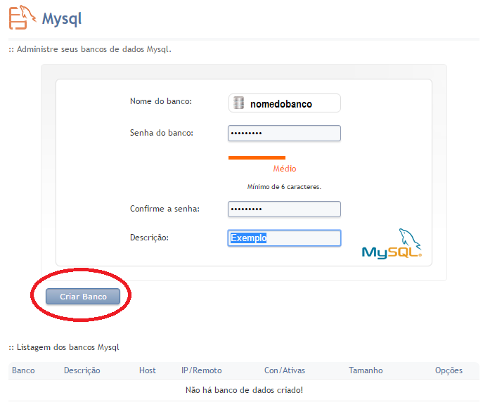 2- Preencha as informações solicitadas: senha e descrição (identificação da base no painel. É opcional)