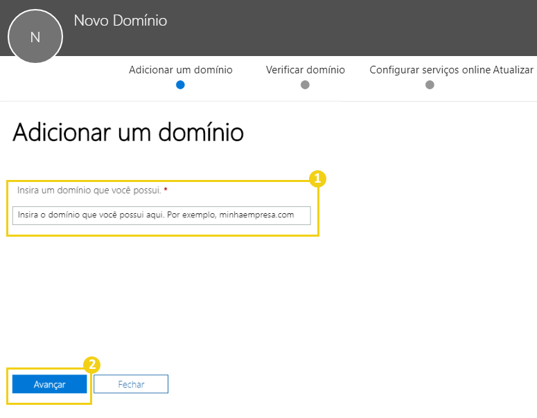 Após adicionar todas as entradas, retorne ao painel do Office 365