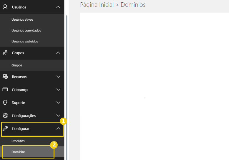 No Office 365, na barra lateral esquerda, clique em Configurar
