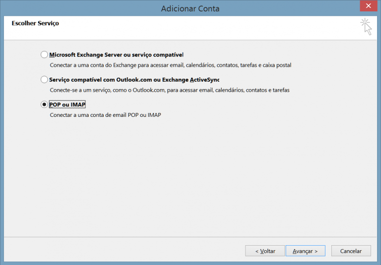 5- Selecione a opção POP ou IMAP e clique em Avançar