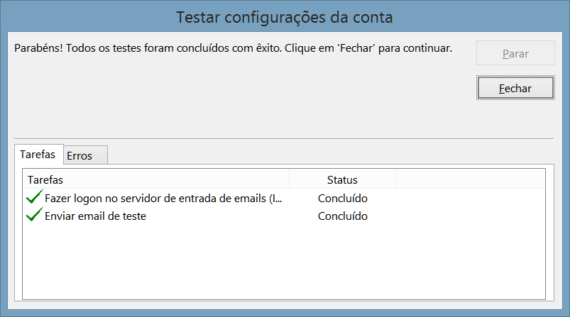 Depois, é só clicar em Concluir e pronto, você já poderá utilizar seu e-mail no Outlook 2016.